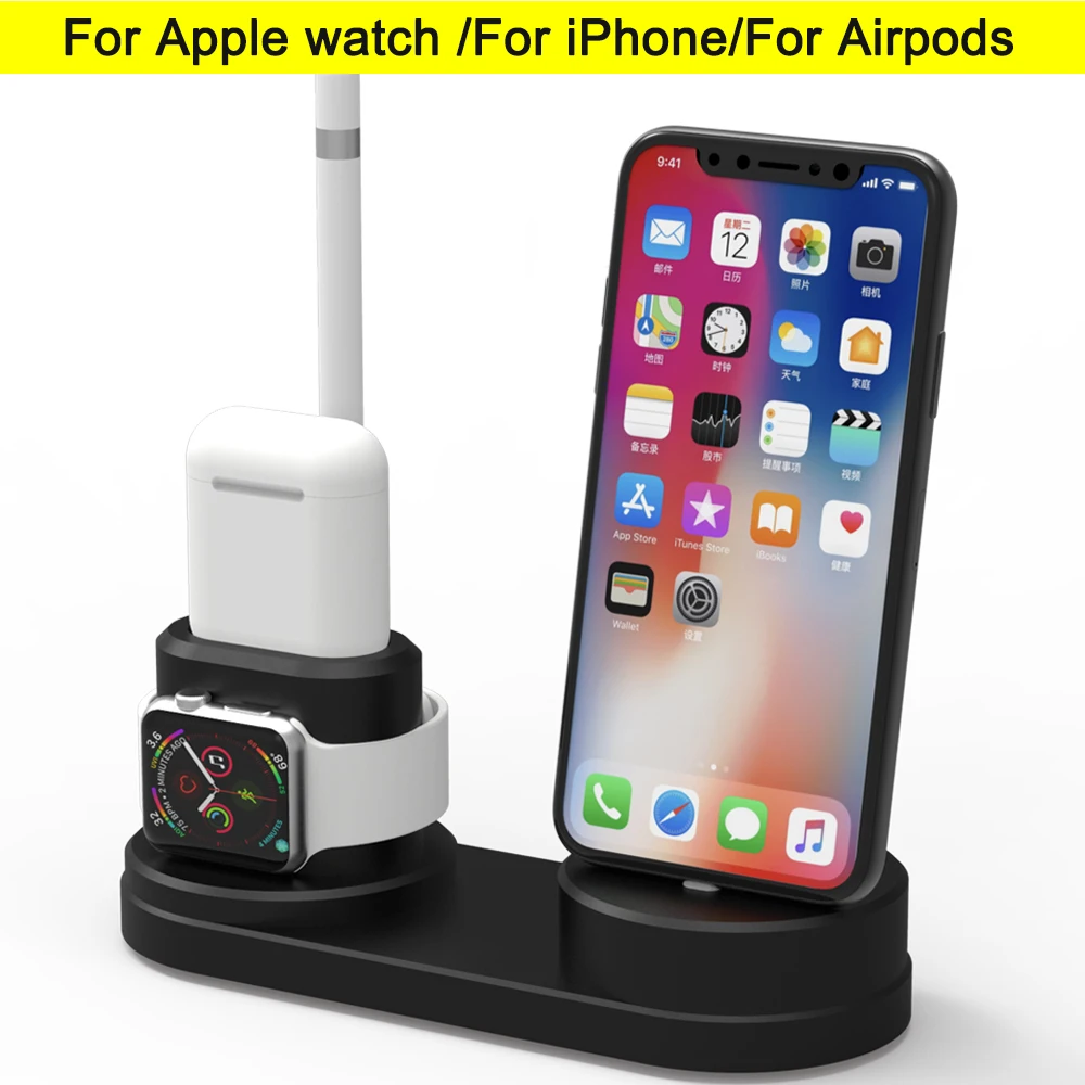Special Price of A variety of Silicone Charging Dock For iPhone X XR XS 8 7 6 Apple Watch Airpods Charger Holder Wat